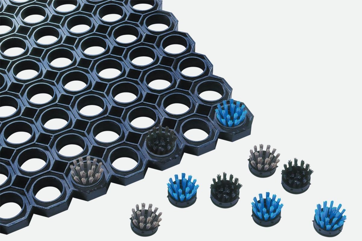- Optional insert brushes enhance scraping action and can allow for logos, messages, or brand colours on the mat