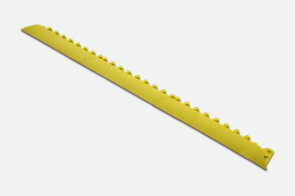 Cushion Link bevel edges enhance safety by removing the risk of trips and falls, whilst being aesthetically pleasing. The bevels also highlight the edges to the mat and ensure the tiles are suitable for wheeled use. Please note there are two types of bevels – female and male and each tile has two female and two male sides. The bevels simply click into position to create the ramped edge. Our Cushion Link range is a modular anti-fatigue matting system, featuring either an open, or solid top design with differing surfaces and production methods. Compatible with our Cushion Link Open and Solid Top range.