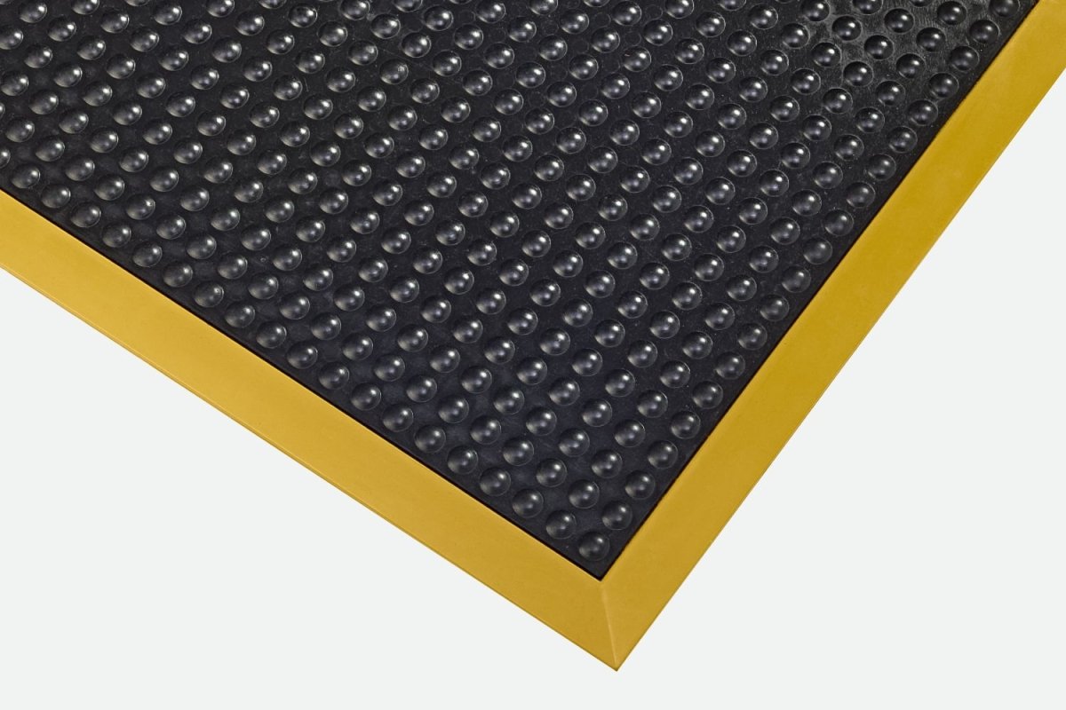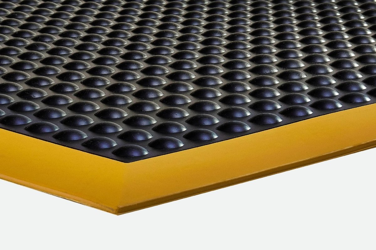 Ergotred is a versatile anti-fatigue loose lay mat which is manufactured from heavy duty flexible rubber known for its 5-star comfort rating. The domed air cushioned pockets across the surface have been designed to provide optimal worker comfort and improve circulation. The bevelled yellow edges and suction cup backing enhance the anti-slip properties, making it an ideal mat for heavy duty dry industrial and manufacturing environments and many more applications.