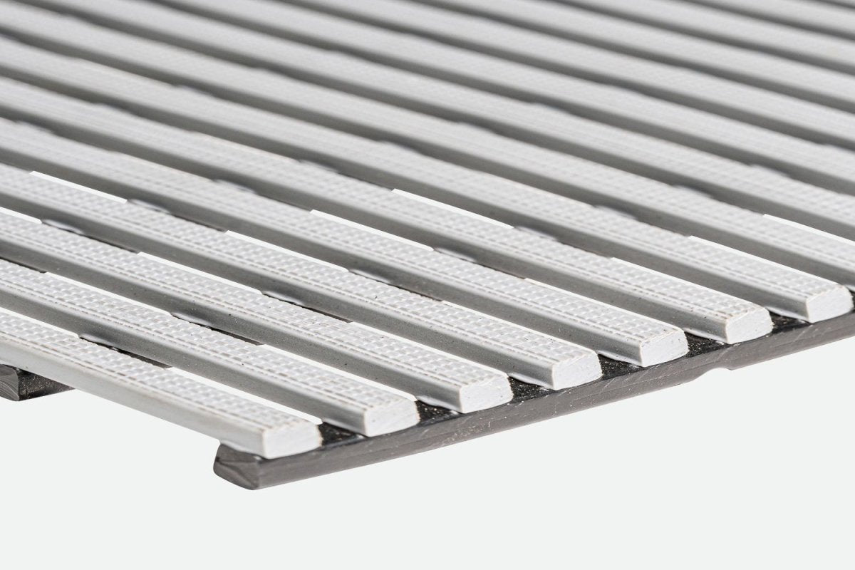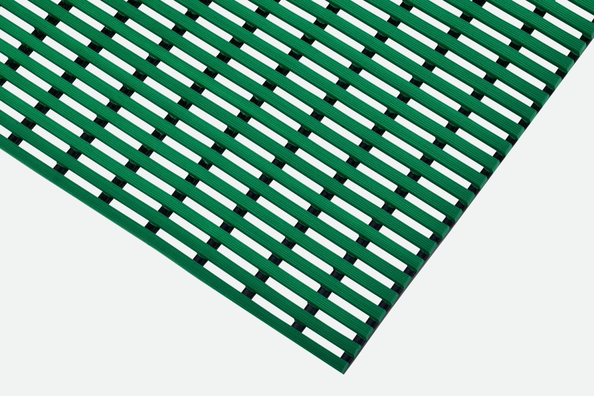 Interflex is the ultimate multi-use slip resistant mat designed to withstand extensive foot traffic. Interflex can be used in wet areas such as swimming pools, changing and various other sport and leisure facilities, along with industrial, construction and catering establishments where slip hazards exist. The strong, non-porous PVC with channelled underbars automatically self-drain even when faced with large amount of water, oil, grease, or chemicals. The mats embossed surface provides exceptional grip whilst the anti-microbial and anti-fungal additives ensures excellent hygiene. Interflex also offers excellent sound absorption properties. Connector clips are available for side or end joining to create the perfect shape or fit.