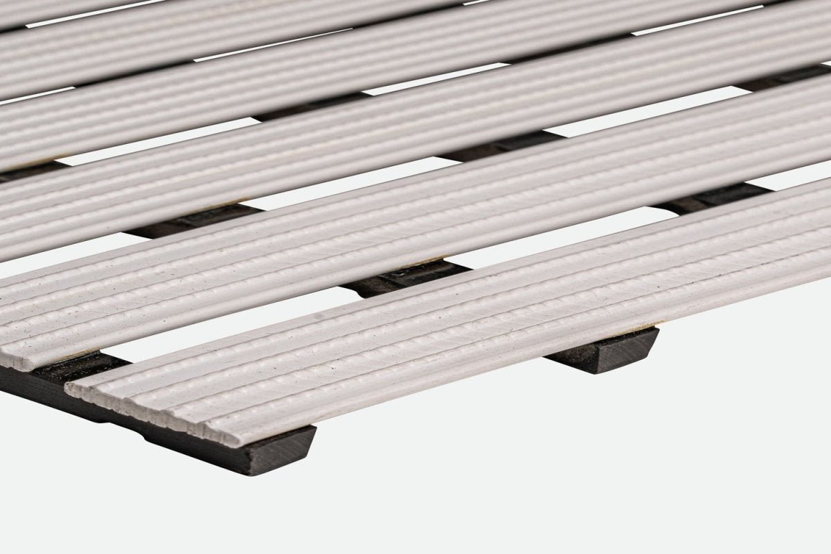 Interflex Style is a strong, impact resistant, flexible duckboard mat with a unique cross-ribbed design for barefoot hygiene, comfort and stability. Constructed from the highest-grade unplasticized PVC, the design allows water to drain on all sides, whilst the mats deadweight ensures they rest firmly on the floor. Interflex Style has been designed with the sole focus of preventing slips to ensure pools, baths and saunas can be enjoyed safely.