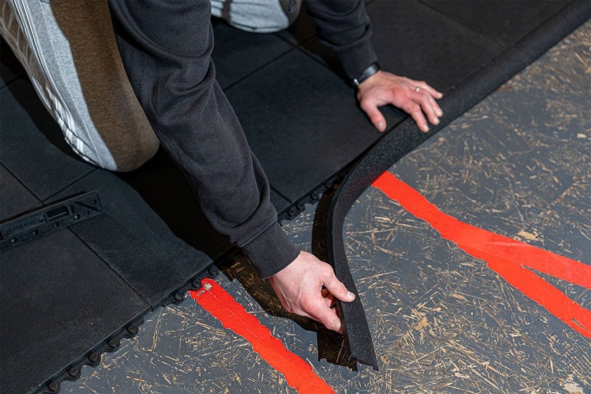 Our Interlocking Gym Mat is a modular anti-fatigue matting system designed specifically for gym and fitness environments, from weight rooms and strength training zones to cardio studios and high-intensity interval training (HIIT) areas. The textured surface provides outstanding anti-slip protection and ergonomic comfort, making it ideal for high-traffic workout areas. Its shock-absorbing qualities and noise reduction benefits are perfect for dynamic fitness spaces, including yoga studios, and group exercise rooms. Featuring a secure interlocking system with male and female edges and bevels, our Interlocking Gym Mat can be easily customised to fit any size or shape, ensuring a safe and seamless flooring solution for every fitness space.