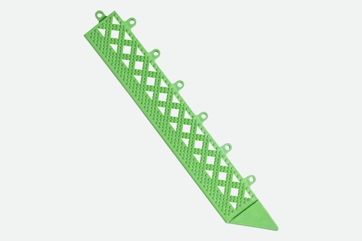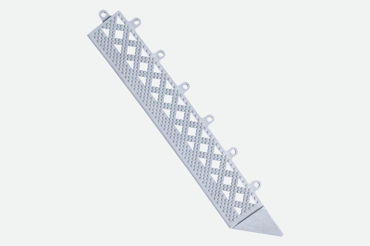 Kumfi Tile PVC bevel edges enhance safety by removing the risk of trips and falls whilst being aesthetically pleasing. The bevels also highlight the edges to the mat and ensure the tiles are wheelchair, pushchair, and trolley friendly. Available in matching colours to the Kumfi Tile PVC, only one type of bevel is required for all sides to ensure the perfect all-round secure fit. Kumfi Tile PVC is a very versatile, simple, and effective interlocking matting system with bevelled edges, designed with a high grip surface making it suitable for a wide variety of applications. The free flowing 4-way drainage design means the system is effective for indoor and outdoor, dry, wet, oily and greasy environments. When used for leisure applications, the soft PVC construction provides the ultimate barefoot comfort and anti-slip safety. At the same time, Kumfi tile PVC provides fantastic anti-fatigue benefits and is durable and hard wearing for most commercial and industrial applications.