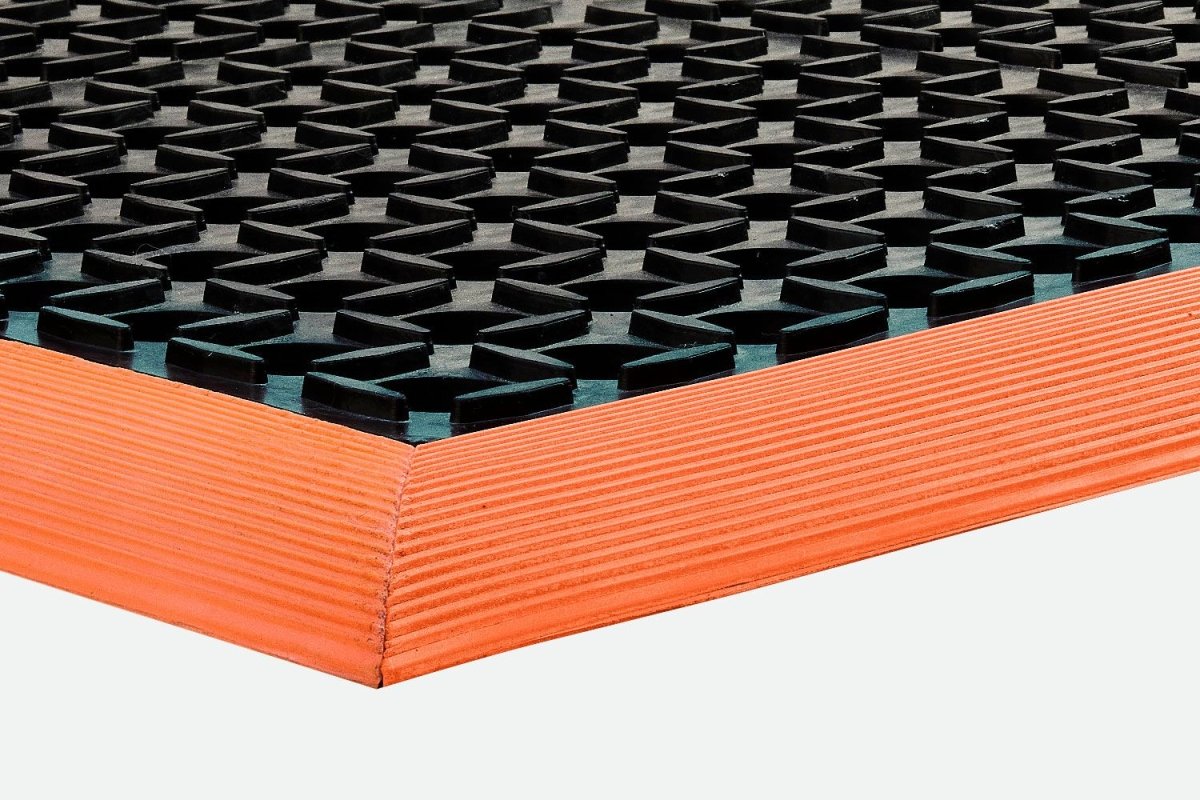 - Drainage holes and raised studs allow fluids and debris to fall through, leaving a dry, safe and comfortable work surface