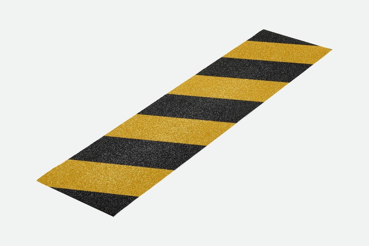 Diamond Grip - Hazard is an extremely tough, durable self-adhesive anti-slip tape with hazard chevrons for added protection for medium to high traffic areas. Along with possessing exceptional grip levels, the safety grip is waterproof, can sustain most chemicals and, be used inside or out for added protection on steps or walkways.